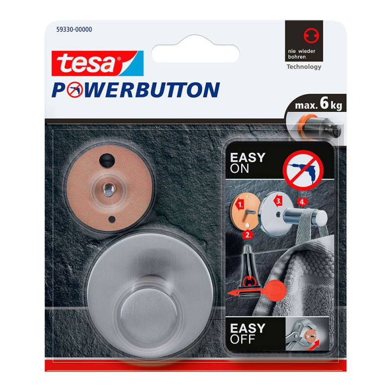 Gancho powerbutton classic round de acero inoxidable, resistente al agua y al calor. montaje sin perforaciones, soporta hasta 6 kg