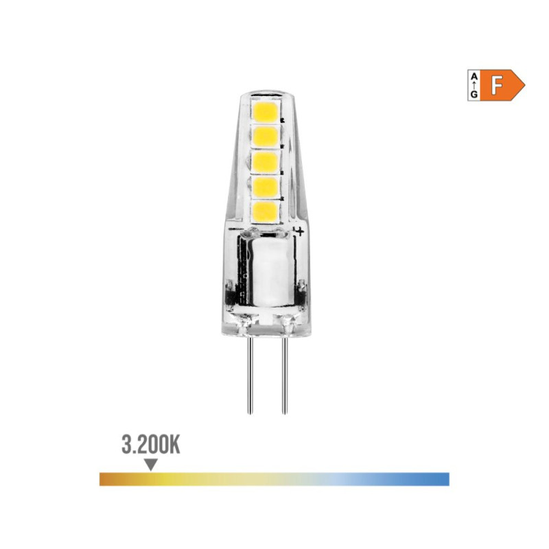 Bombilla bi-pin silicona led g4 12v 2w 180lm 3200k luz calida ø10x37mm 25000h clase energetica: f. angulo de apertura: 300° edm
