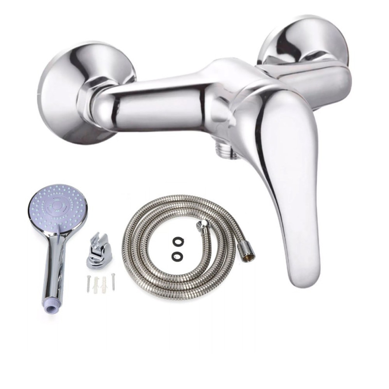 Grifo monomando empotrado de ducha. color cromado. material: cuerpo de latón, con mango de zinc. con accesorios. cartucho cerámico. incluye: 2 conexiones excéntricas, 1 flexo, 1 mango de ducha (3 funciones) y soporte para mango de ducha. medidas: 15,1 x 11,5 x 11,5 cm