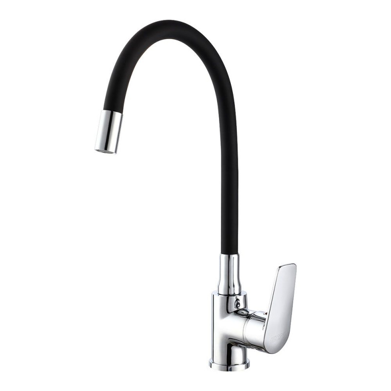 Grifo de cocina monomando con cuerpo de latón con mango de zinc recubierto de goma - acabado cromado - cartucho de 35 mm - caño de goma flexible negro de 40 cm - con atomizador y sistema de ahorro de agua - dimensiones 213 x 46 x 360 mm