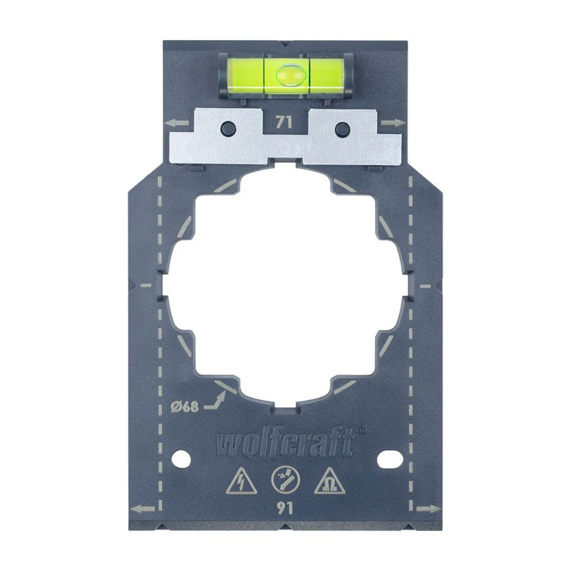 Plantilla para marcar y alinear, para medidas de 71 y 91mm. para la instalación rápida y sin errores de insertos de cajas de enchufe e interruptores en obra en seco. nivel de burbuja que permite una alineación sencilla de la plantilla para marcar con exactitud la posición del taladro, así como para la alineación de las cajas de instalación y los insertos. marcas de 71 y 91mm para transferir cómodamente las distancias correctas entre dos cajas de instalación, así como cajas de enchufe y cajas de tv o red. manual de instrucciones paso a paso con ilustraciones para el uso correcto de la plantilla para una instalación cómoda y segura