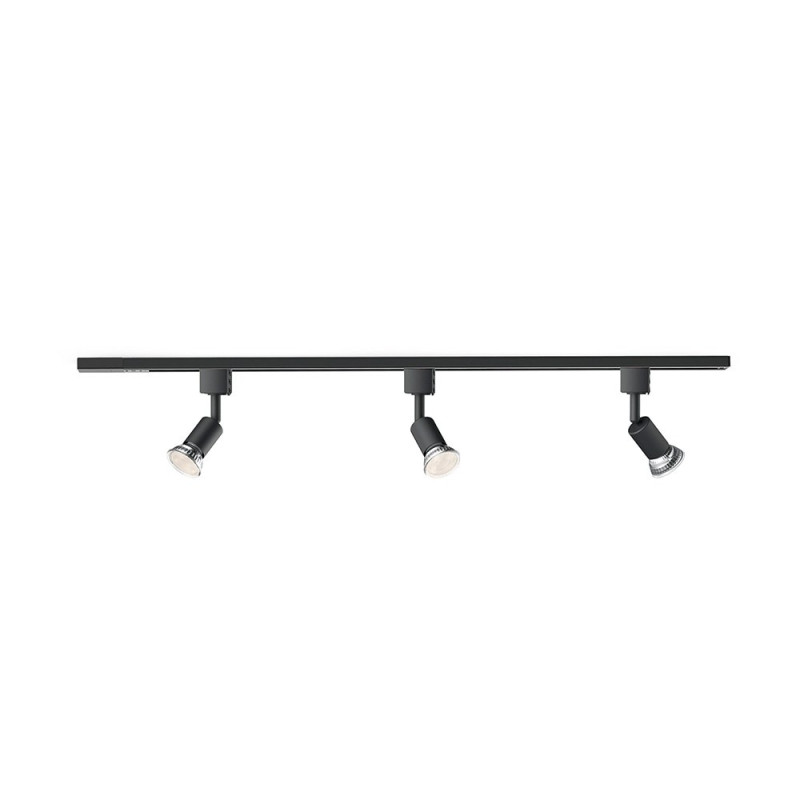 Sistema de riel eléctrico easylink 3 focos tobia x 5 w, color negro. 220-240 v~50/60 hz, casquillo gu10 (bombilla no incluida), incluye un riel de 1 m, 3 focos tobia, fuente de alimentación y 2 tapas finales. soporte máximo de 6 kg por metro. cabezal de foco ajustable. perfil de 17 mm. fabricado en aluminio de alta calidad. sistema de carril en h de 3 cables. compatible con bombillas led inteligentes y clásicas (opciones de regulación y temperatura de color según bombilla, disponibles por separado). totalmente compatible con el resto de componentes easylink. incluye elementos de fijación. dimensiones: 100 x 3,8 x 13,3 cm