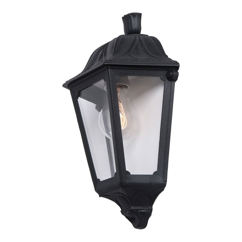 Farol de pared, modelo iesse, color negro con cristal transparente, tensión 220 - 240 v ~50/60 hz, casquillo e27, máximo 23 w, longitud máxima bombilla 130 mm, bombilla no incluida, grado de protección ip55, hecho de resina resistente uv, anticorrosión y antióxido. incluye elementos de fijación. 220 x 105 x 350 mm