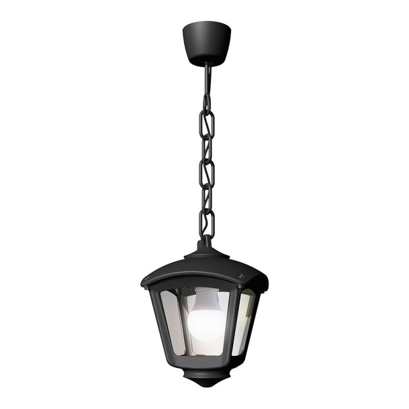 Farol de techo con cadena, modelo sicar/roby, color negro con cristal transparente, tensión 220 - 240 v ~50/60 hz, casquillo e27, máximo 23 w, longitud máxima bombilla 120 mm, bombilla no incluida, grado de protección ip55, hecho de resina resistente uv, anticorrosión y antióxido. 195 x 195 x 700 mm