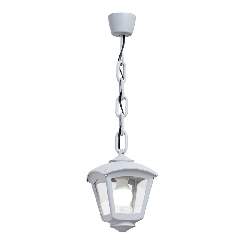 Farol de techo con cadena, modelo sicar/roby, color blanco con cristal transparente, tensión 220 - 240 v ~50/60 hz, casquillo e27, máximo 23 w, longitud máxima bombilla 120 mm, bombilla no incluida, grado de protección ip55, hecho de resina resistente uv, anticorrosión y antióxido. 195 x 195 x 700 mm