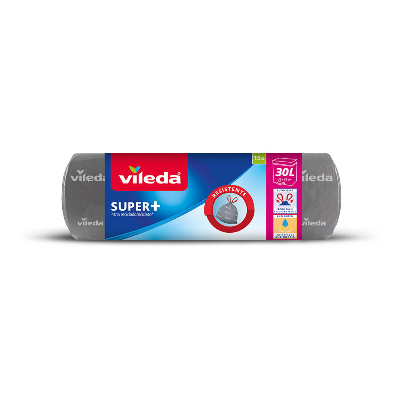 Bolsa de basura ecobag 30l (15 bolsas) bolsa de basura resistente con doble capa. con autocierre y sistema antigoteo. ideal para cubos de cocina. 171447 vileda