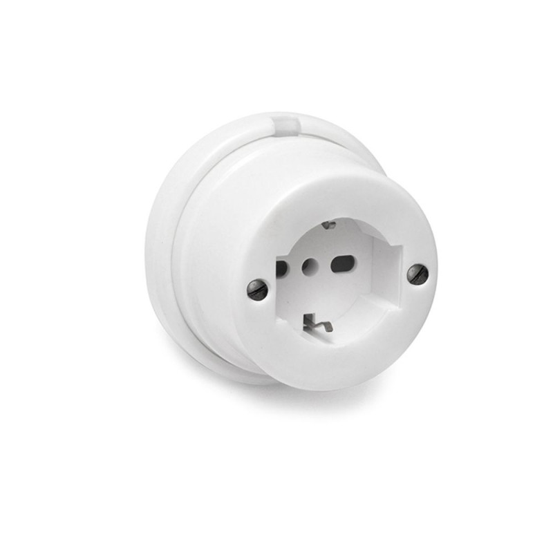 Base schuko t/tl superficie de porcelana serie vintage 16a 250v ø80mm blanco