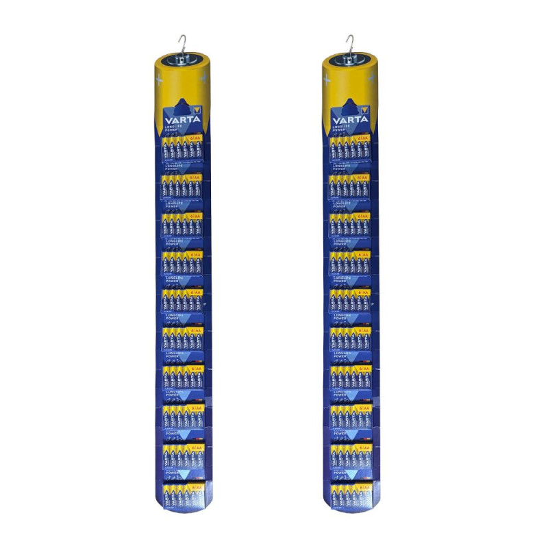 Dos tiras expositoras clipstrip aa con 10 blisters de 6 pilas cada una - apto para blísters individuales estándar de tamaños aa, aaa, c, d, 9v, forma de pila para una mejor visibilidad y reconocimiento, ahorra espacio, fácil de manejar, puede colocarse en muchos lugares favoreciendo la compra por impulso en zonas de alta frecuencia o junto a dispositivos y en cualquier otro lugar donde se necesiten pilas, garantiza una rotación eficiente del producto - compuesto por al menos un 30% de material reciclado
