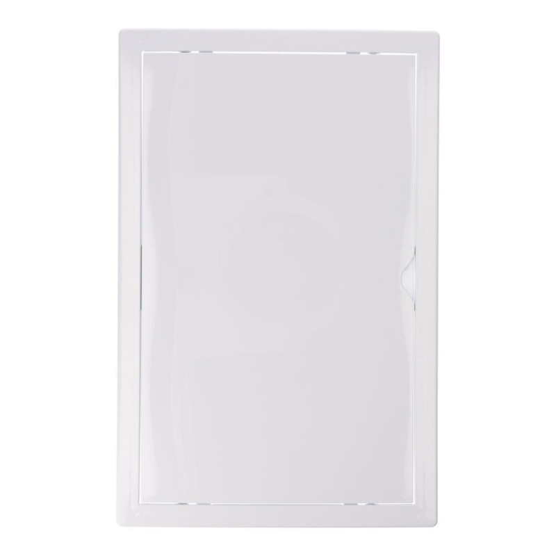Tapa de registro rectangular empotrable de plástico, medida enclavamiento 25x40cm, medida 27,5x42,5cm, apto para pladur y con mecanismo de apertura (push-pull), blanca