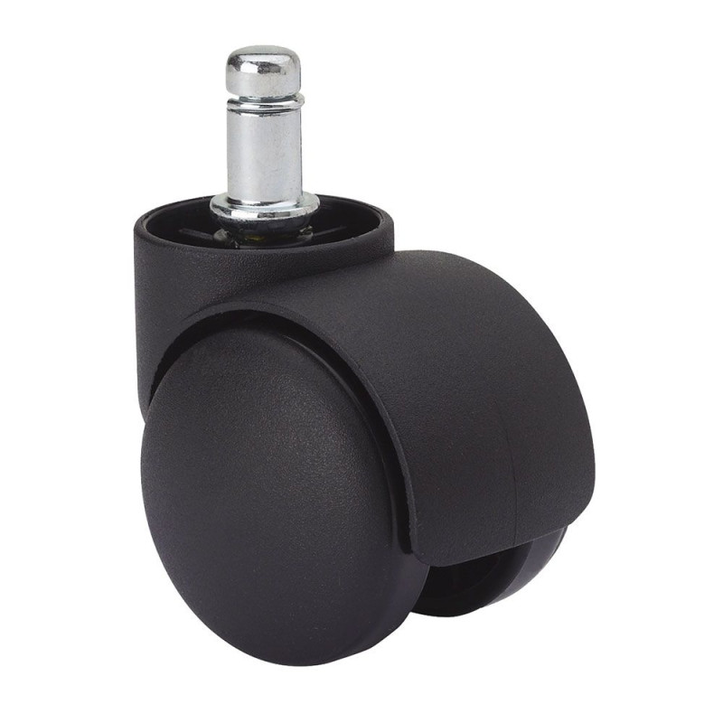 Rueda giratoria espiga lisa y eje liso, color negro, material: polipropileno- plástico, carga máxima de 50 kg, medida espiga: 11 x 12 cm, ø 5 cm